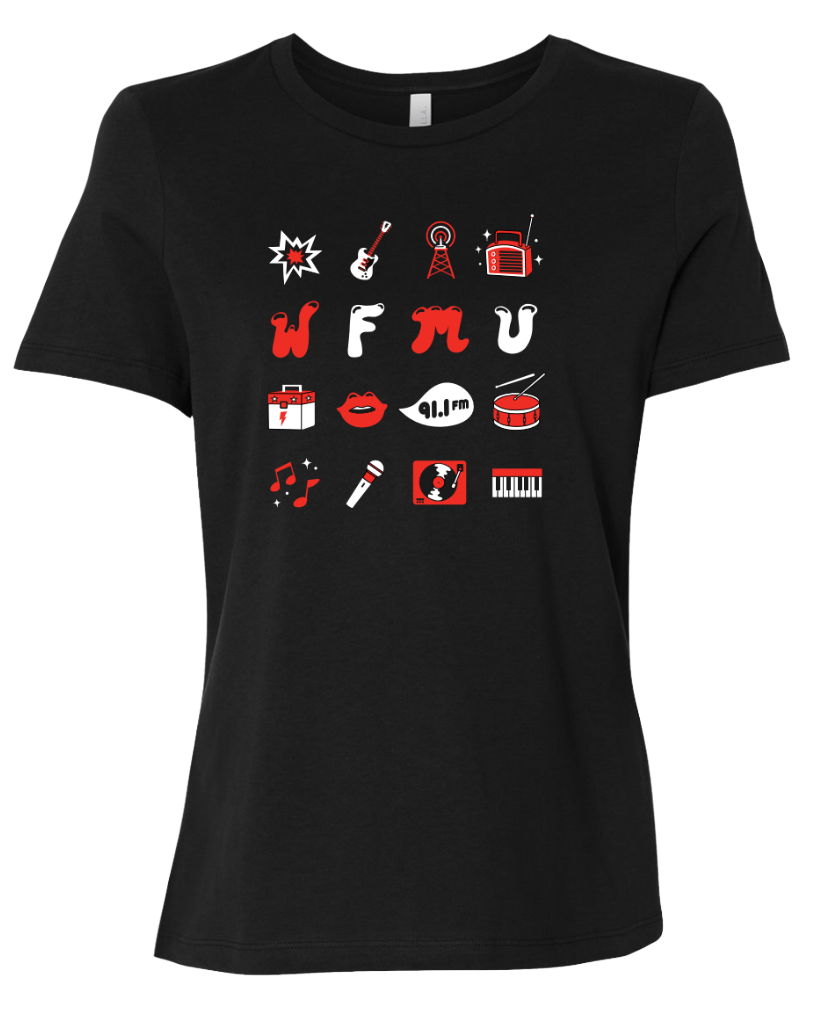 WFMU Red and White and Fun All Over Grid T-Shirt! A design by New York designer and artist Mary Blount, also a member of the band Baby Shakes!