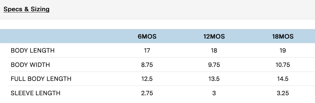 Available in 3 sizes: 6 months, 12 months, and 18 months