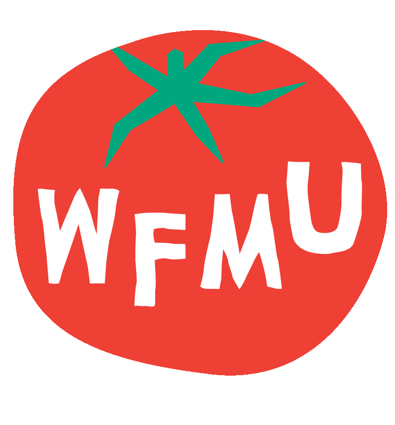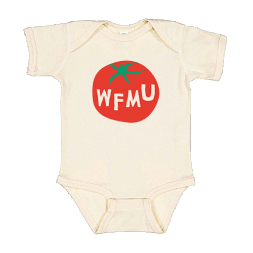 The WFMU Onesie is back! Featuring the WFMU Jersey Tomato logo designed by Tiffanie Tran.